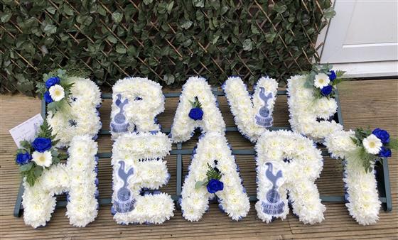Specialised funeral tribute with added Tottenham Football Team detail.