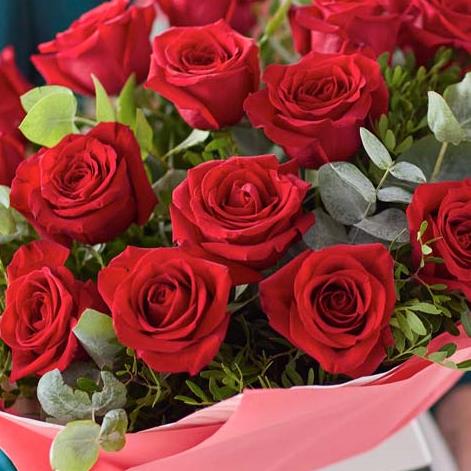 Want to woo someone with flowers? This is how you do it. Our artisan florists spiral long-stemmed red roses in the hand to create this magnificent bunch. It's then beautifully gift-wrapped and hand-delivered for a truly magical doorstep moment.